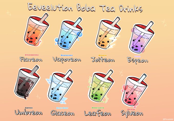 I drew an eeveelution-inspired boba tea menu for the Pokémon fans :D