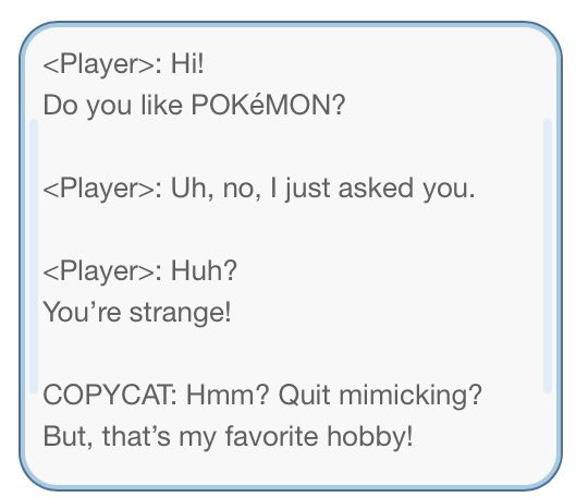 In FRLG, when talking to the copycat girl, it is implied that Red (the player character) is speaking in order for the copycat girl to mimic him. The dialogue is below: