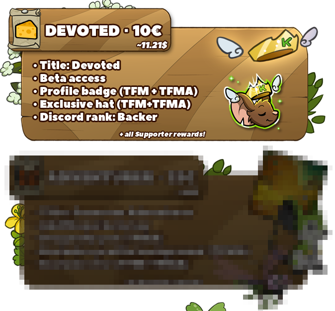 The Devoted tier gives you an exclusive title, badge and hat, to show off in BOTH games! 👑