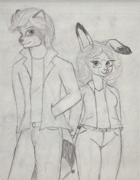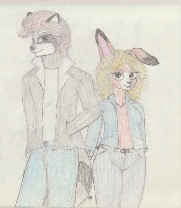 4 AM doodle of my OC's Rocky and Bunnie! How they looked in 1979-1980.