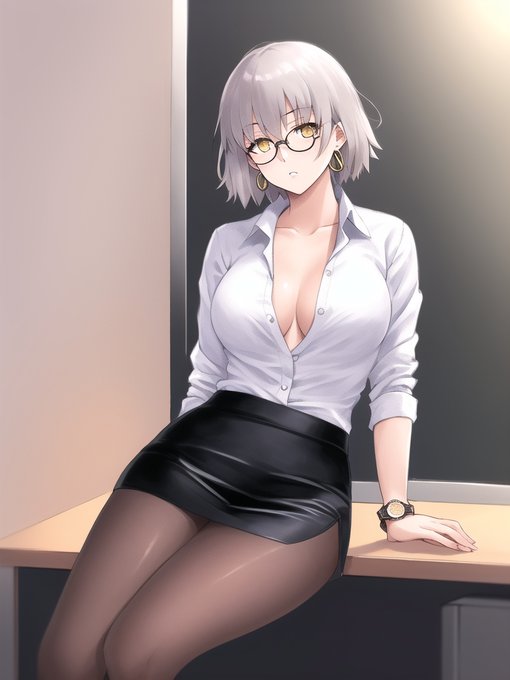 OL 貞德 #NovelAI #NovelAIDiffusion #Fate/GrandOrder #巨乳 #制服 #黒タイツ #眼鏡 #ジャンヌ・ダルク(Fate) #OL https://t.co/HzBLIizjLC