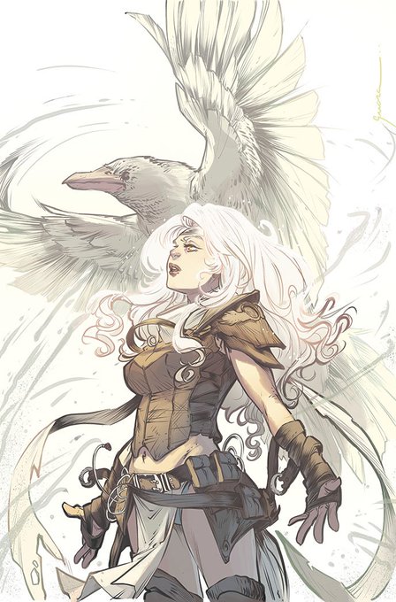 Showing off one of my covers for SUBMERGED from @thevaultcomics with amazing inks as usual from @heyjenbartel. Originally this was going to be far more pink an accidental error with an overlay layer led to a silvery-ish fire that worked far better with those dark feathers!
