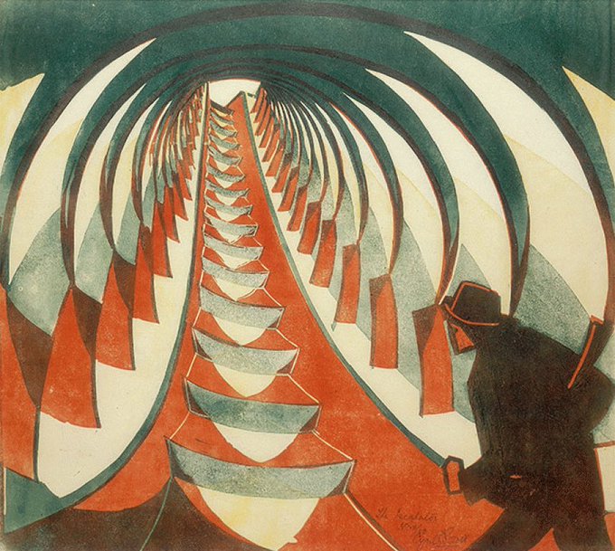 The Escalator, Cyril Power Linocut in 3 colours - edition of 50