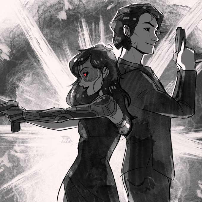 A sketch I did for my friend of her villain misfire and my villain Veron 💥 spy au!