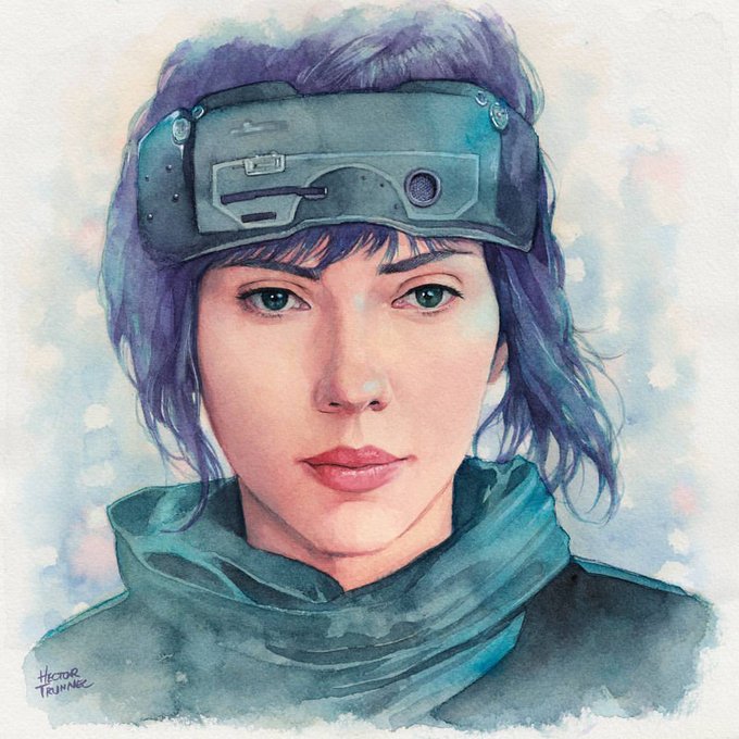 Scarlett Johansson as The Major #ghostintheshell #watercolor #scarlettjohansson #illustration #fanart #manga #anime #