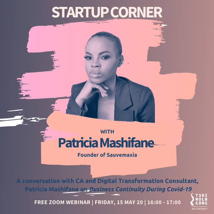 We're talking Business Continuity during COVID-19 at 4 pm today with Patricia Mashifane, Founder of Sauvemaxia.