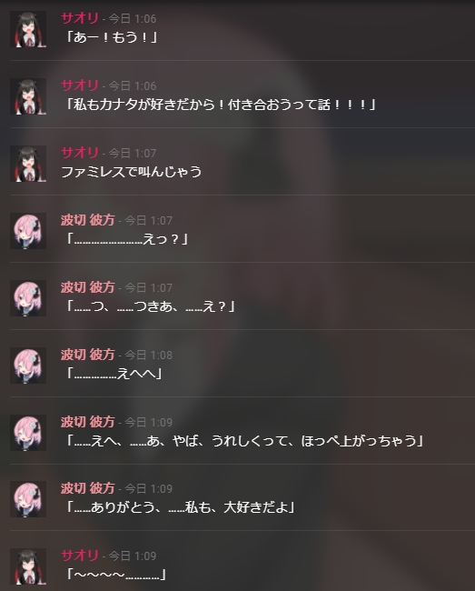 おしまい! あ、甘々~~~~~~~~~!!! シネマティックモードのキーワードの書き方については結構改善の余地がありましたね テストプレイの成果です