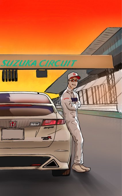 #落書き #シビック #描いてみた 父親からの依頼で愛車とのイラストを。※父親はレーサーじゃないですからねw