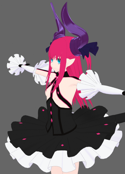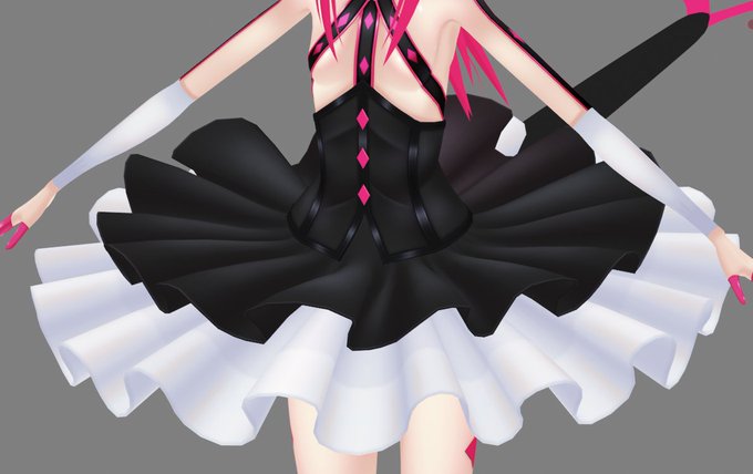 肌テクスチャ進捗。肌影を全体的に少し濃くし、黒とピンクの衣装部分に陰影をつけた