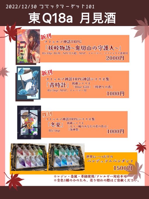 今回シナリオの他に初東京にペンデュラムも持っていきますので、是非是非足を運んでいただけたら!