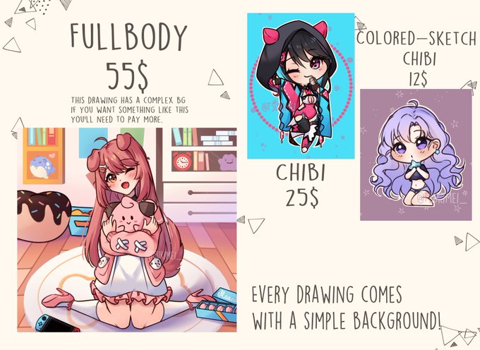 Hello! I'm Mei, a digital anime artist that loves to draw cute things! Here you can easily find information about commissions and other things! 🌸✨