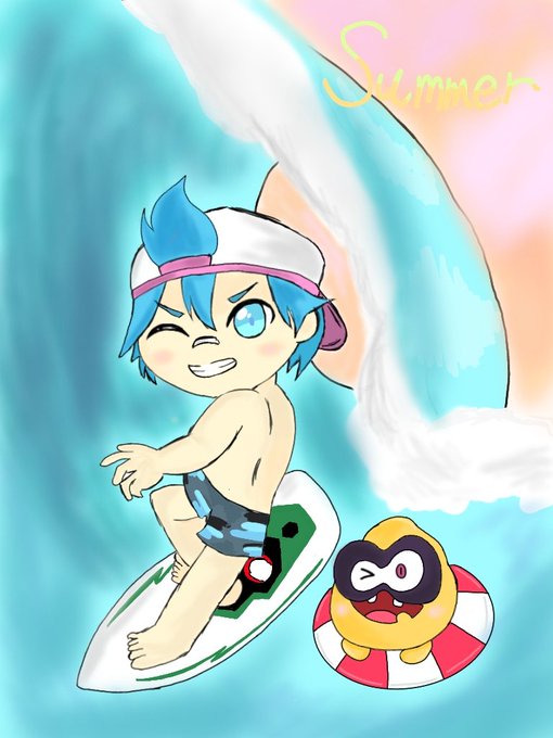 夏休みということでカッペイとガムっちが波に乗ってる様子を描いてみました! そして鬼滅の刃の要素も入れて見ました❗夏休みはニンジャラで乗り切ろう!