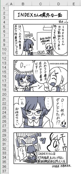 Excelの関数を擬人化したキャラクターを描いています