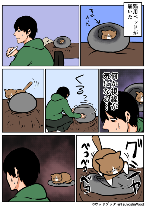 【漫画日記】先日仕事でいただいた猫のベッドが届きました。 http://t.co/HTN4NhftKg