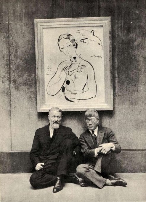 Tsuguharu Léonard Foujita & Kees Van Dongen, 1929. “La femme à la colombe et au chat”. Tableau commun.