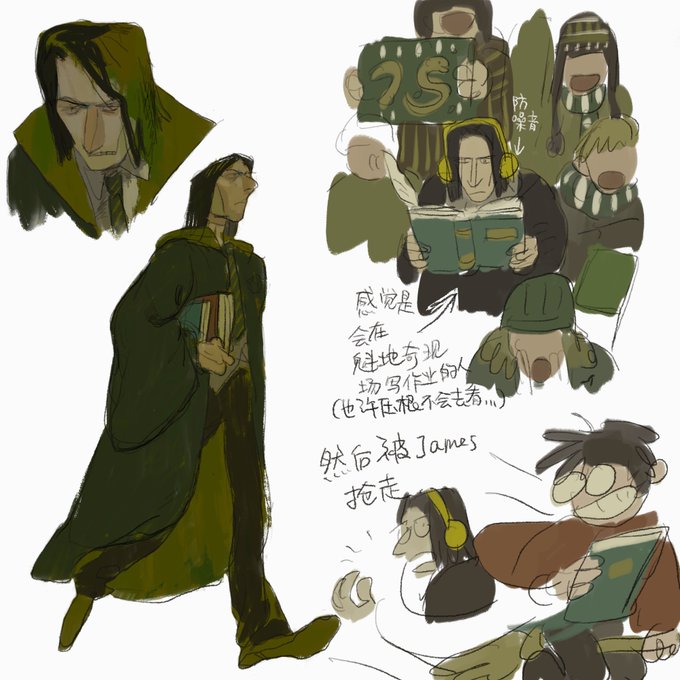 p3:snape in his teens (he did his homework in quidditch stadium and James snatched his book )