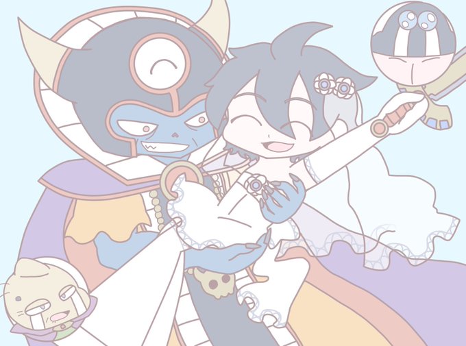 りゅうロラとロレムンとゾマ勇ちゃんを煮込んだ結果。ほんとはもうちょい違う感じだったけど満足。...そのうちバニー勇者ちゃんゾーマ様の膝に乗っけた絵も描きたい。( ˘ω˘ )