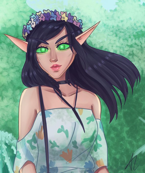 Commission I did for @Woahtherenick of their lovely bloodelf. I really enjoy painting her 💜