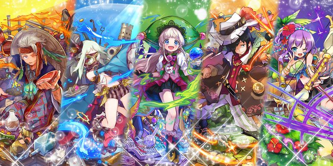 メルスト☆3の炎、水、風ユニでファイブヘッダーです! どの属性も色気一位を男の子がもってっちゃった不思議 #メルスト #ヘッダー