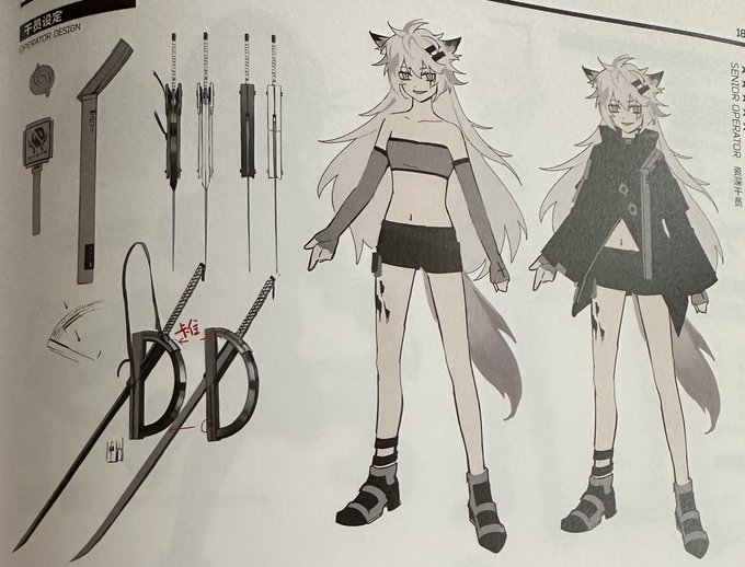 @uz30001 I was howling about lappy's flat chest in the concept art book - Kaleka #アークナイツ #Arknights ENT TL