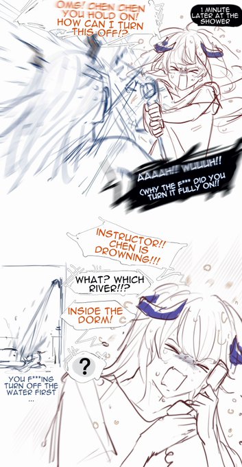 Bagpipe follows Chen into shower #アークナイツ #Arknights By 左刀行. Authorized TL. https://t.co/siXHnuVhjG