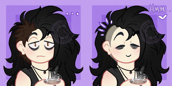 Ok let’s kick it off with my mascot Cleo! She’s a Bisexual disaster with color changing hair. (She/her)