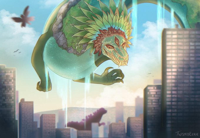 Half body + painterly background commission for @Icydrago4 ! First time drawing a city in years 🏙