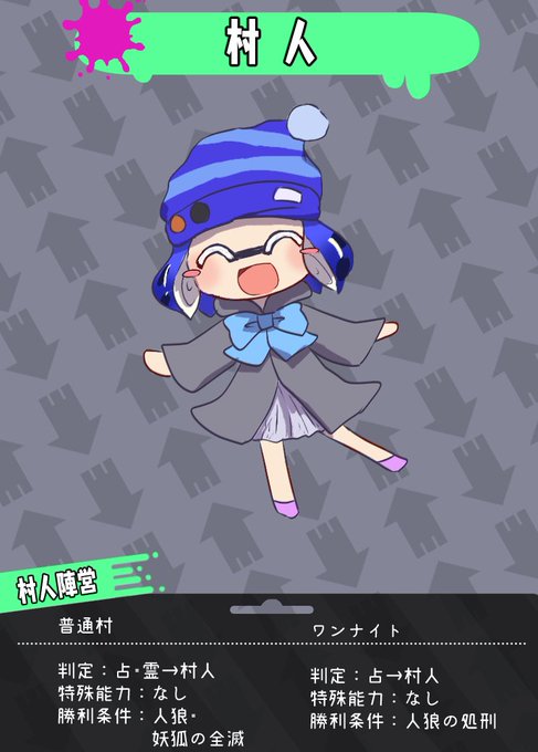 配役らくがき 一通り知ってる役描いたから、素村狼占いあたり増やしたいなぁ ※いつも通りコスプレ注意