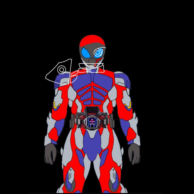 とりあえず全身のイメージは完成! パワー系に見えますでしょうか? 名前はドキン丸さんの案を半分お借りして、モラクスが良い気がしてます🤔 リバイスライダーに多いウ段で終わる名前になりますし、牛の悪魔の名前らしいのでしっくり来るのかなぁ、と https://t.co/atMsKkt6YO