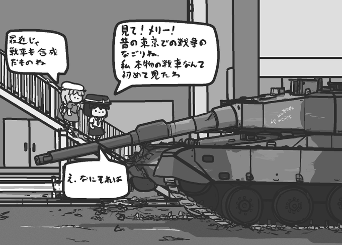 そのうちゲストで描くかもしれない秘封世界の首都が京都なのは東京に新型爆弾が投下されたりしたからという解釈の漫画の1コマ