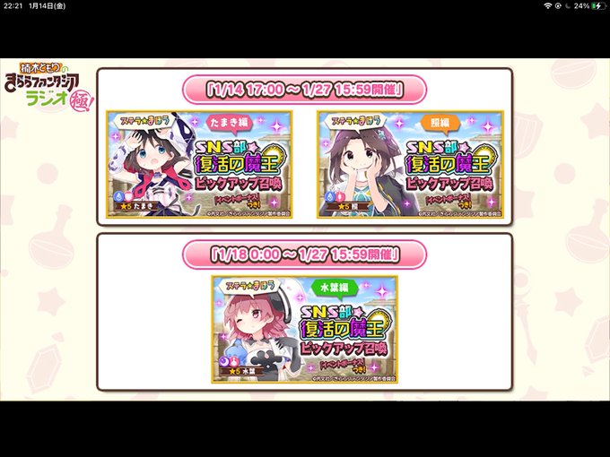 きららファンタジア最新情報 #きららファンタジア 近日中にメインクエスト更新。22日からスタミナ半減やガチャのキャンペーン始まるよ