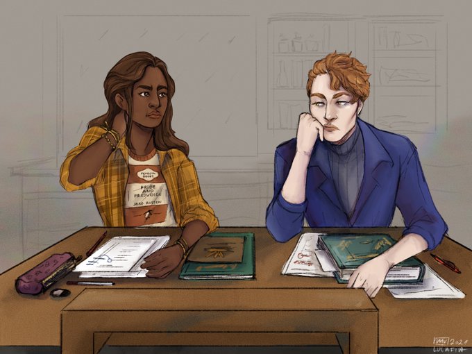 my part of the art swap with @ceylonthae, got the chance of drawing bella and edward from her twilight rewrite, being annoyed and awkward friends in biology class ✨