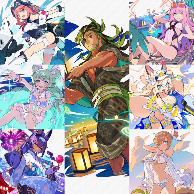 去年の限定水着浴衣全7キャラ。ガチャ開催は4回。去年と違うのは恒常が混ざったピックに対して今年はピックキャラ全員限定なので違いにビビっている。