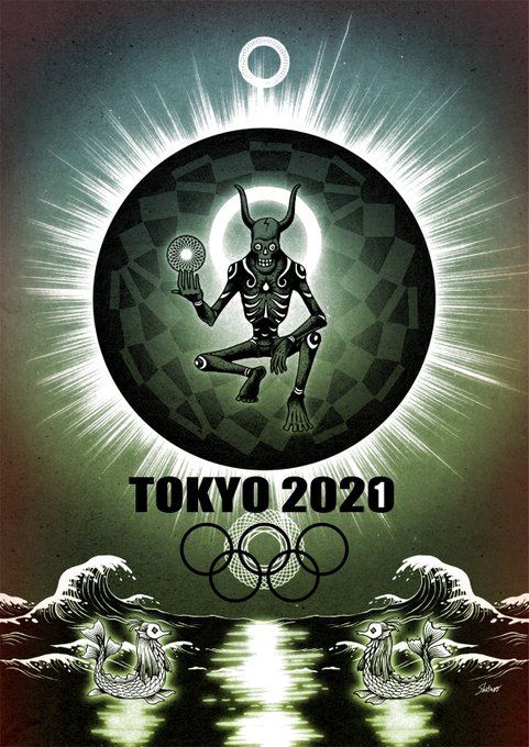 去年描いた角大師イラストとオリンピックのエンブレムが合いそうだったからマッシュアップしてみた。