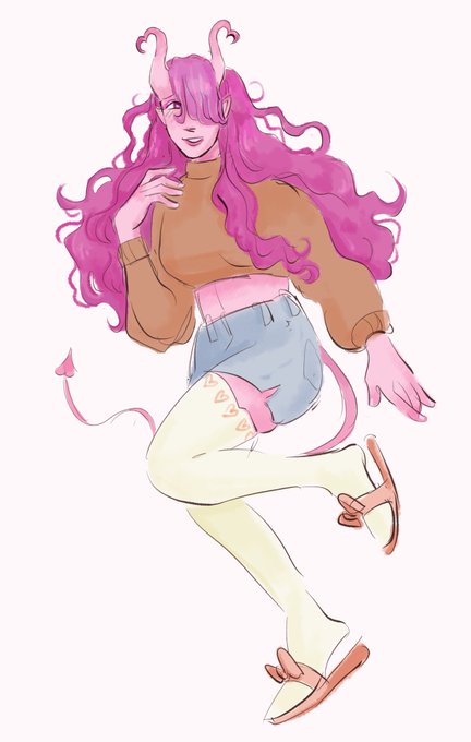 @crab_noises SHE IS SO PRECIOUS this is her og design from one of those design a demon twitter memes where one person replies with a hair color, another with a skin color, etc