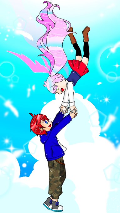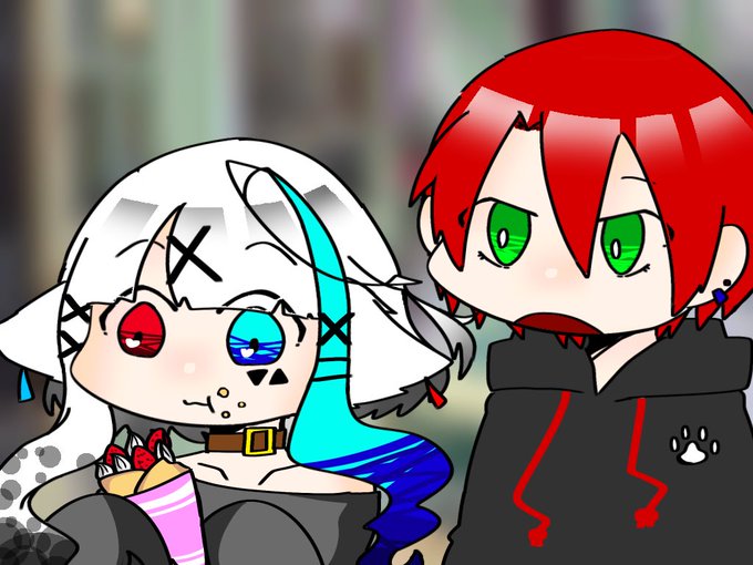 ぽちちゃ[@110Meis ]代理の犬井君(赤毛の子)と、うみねことり(僕)代理のまお(オッドアイの子)の2人のコンビ名である🐶🐱