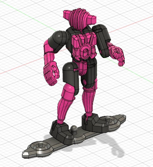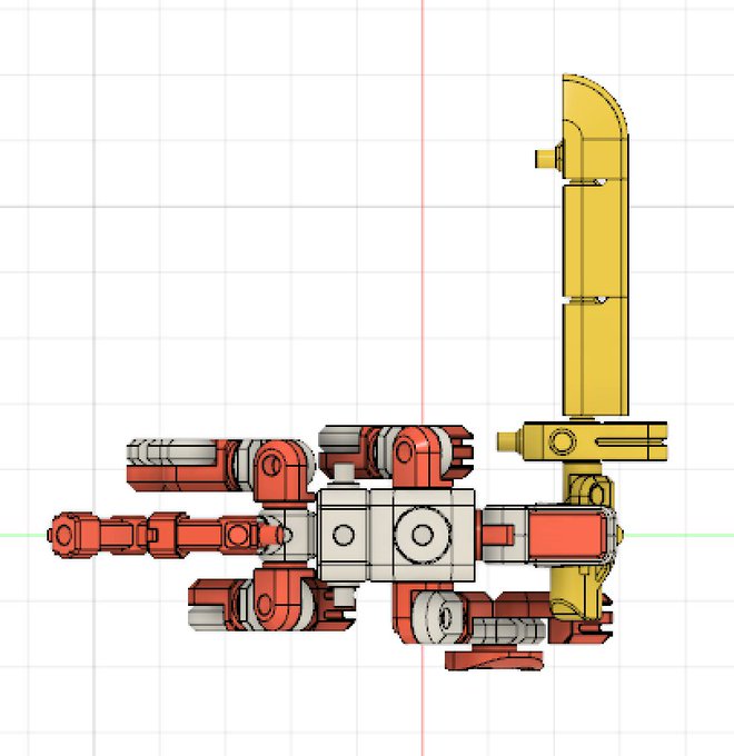 カラー[オレンジ/白]で出力依頼だしたのであとは結果待ち。 4足獣形態、下あごに3mm穴付いているので、噛ませる感じで武器取り付け可能。 しかし最初は既存パーツの再構築もので考えていたのに、気づいたら全て新規造形パーツの構成に
