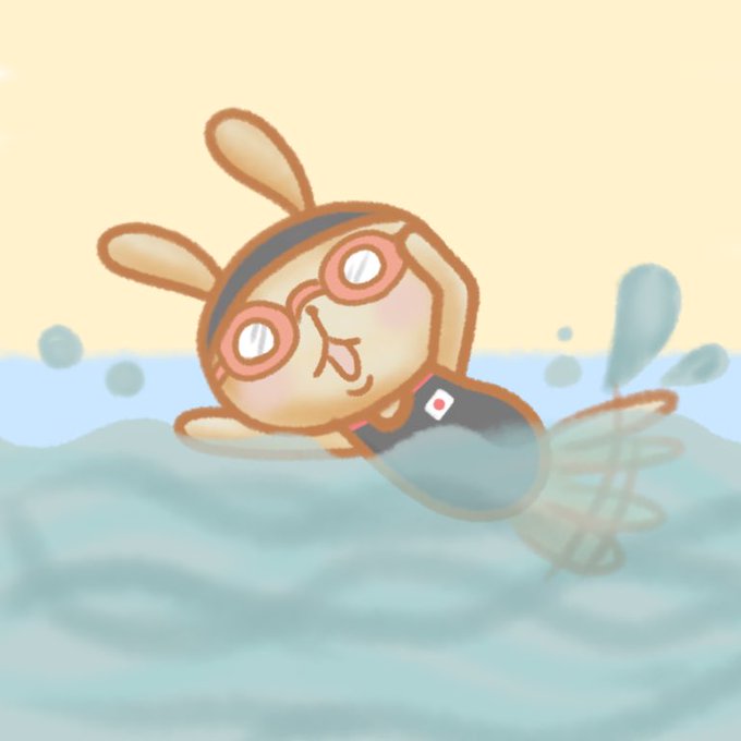 泳ぐうさパン #イラスト #うさパン #水泳