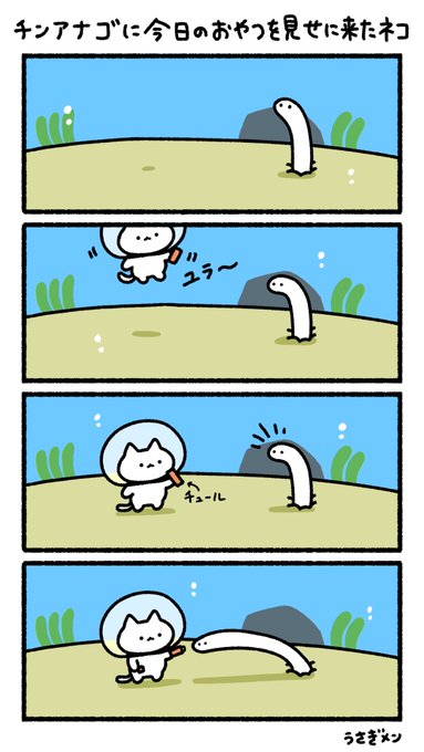 チンアナゴに今日のおやつを見せに来たネコ