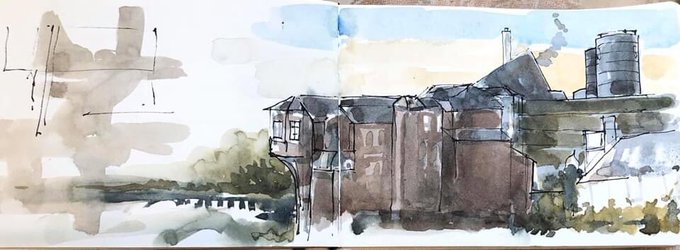 This evening with @JeanEd70 @AnneBH_Art @Teckmanart #roxiebowerman @urbansketchers #urbansketchers #uskathome #Northampton