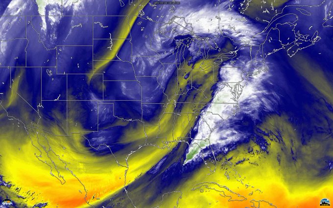 This massive mid-latitude cyclone has wreaked havoc for millions while plodding eastward. The Watches, Warnings and damage have been relentless, and sadly, even deadly. This #GOESEast loop pairs Water Vapor with True Color Visible imagery to convey the power of the huge system.