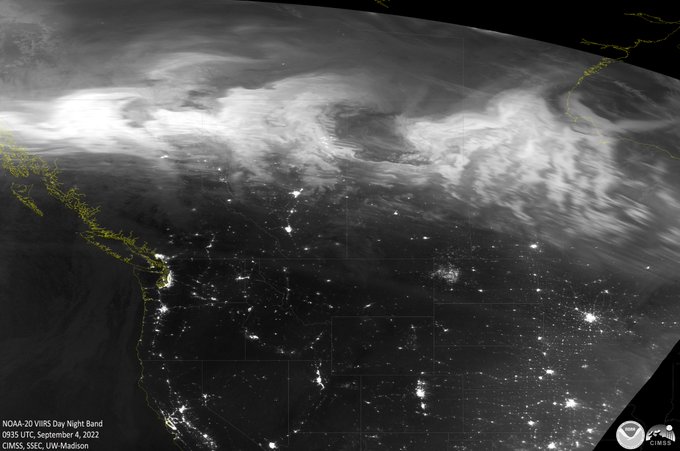 Two striking views of the North America #AuroraBorealis overnight as seen from space. These monochromatic images capture the celestial phenomena during a moment in time (during a satellite overpass) but clearly convey motion. Enjoy!