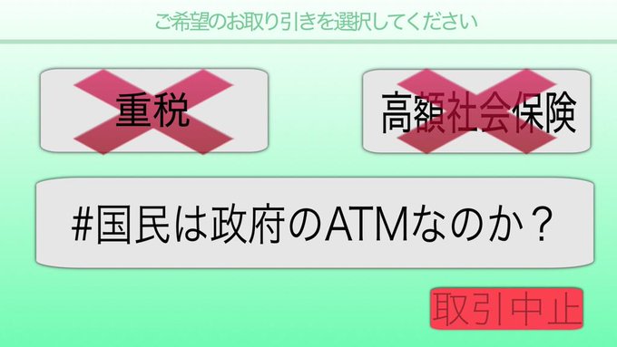 @toto_0921 #国民は政府のATMなのか? 簡単に引き出すなら、 せめて手数料分は国民に 回せ。 自公維新の税金の使い方 ろくでもない。 #ツイデモ✊