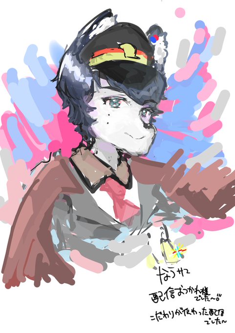 色んな方の配信行ってる中ROMりながら描いた絵 スーツはむさまと軍服なうさま おやすみ