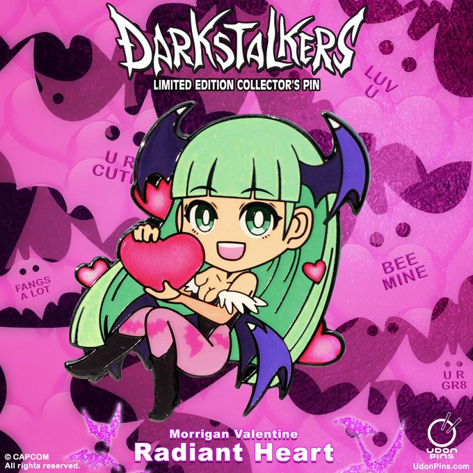 ICYMI: The Brand New #darkstalkers Morrigan Valentine's Pins are selling FAST!! Secure your 2 Pack & FREE B.B. Hood Metal Card while supplies last at the UDON Store! #morrigan #BBHood