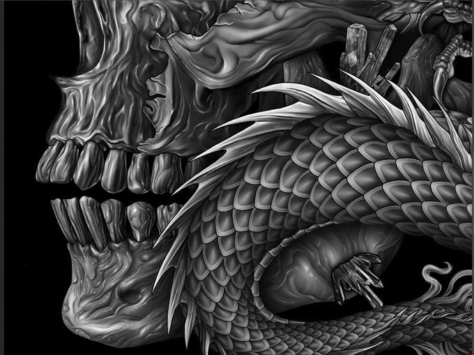 #digitalart #painting #Oc #digitalpainting #grayscale #Dragon