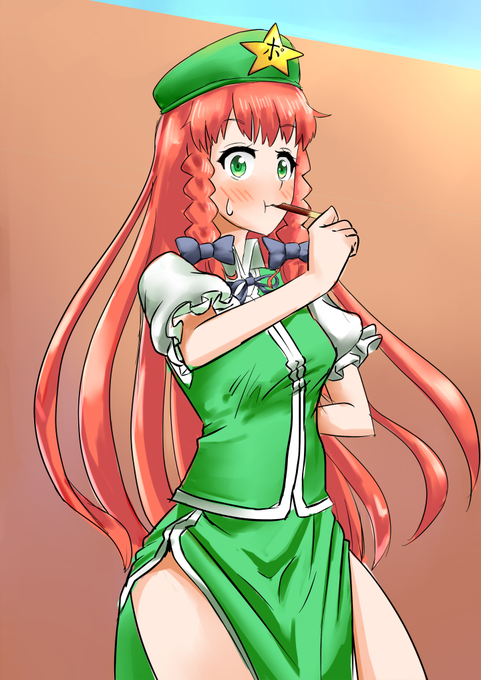 #深夜の真剣お絵描き60分一本勝負 門番中にポッキー残飯処理を兼任していたところを発見された美鈴
