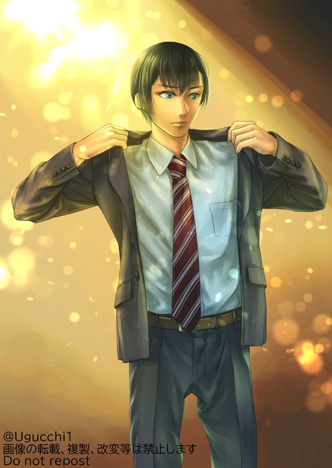 #創作BL #小説イメージ 話の中でパーティまで連れていくことがリアルな日付では間に合わなかったのでせめて絵で描いたよ(今はもう)宮代真哉(10)です。なかなか丁寧に取り扱ってやれずごめんなという気持ち、目玉の色を間違えて塗っていました。