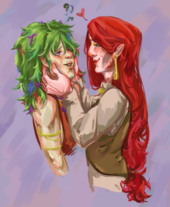 Мурмяушки, смотрите что я принесла 🥺 сейчас готовится один полноценный арт про этим двум красавцам, но решила чуток похихихикать, нарисовав как Аргус держит в ручках Бастиана 🥺💜💜