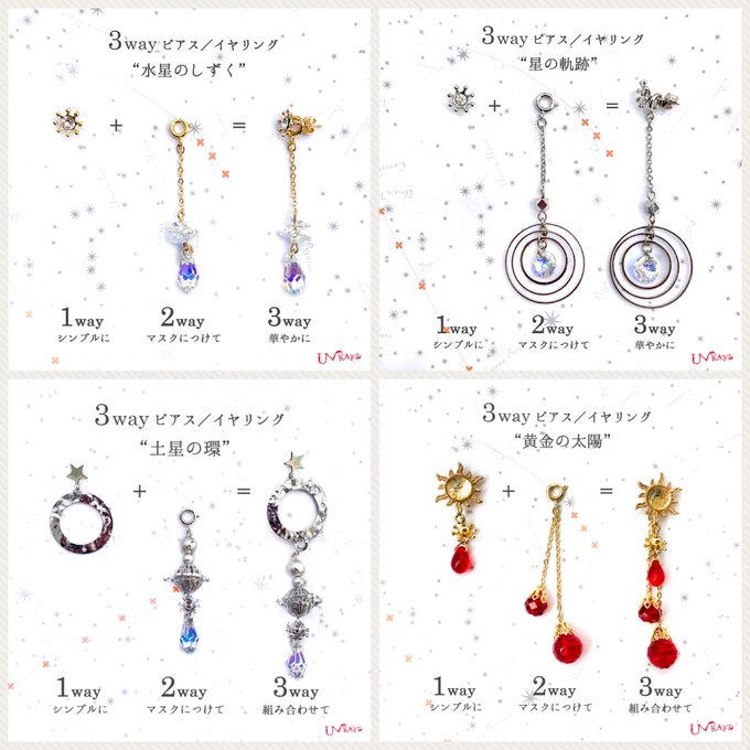 マスクチャームとピアス(イヤリング)を自由に組み合わせて使えるセットです✨